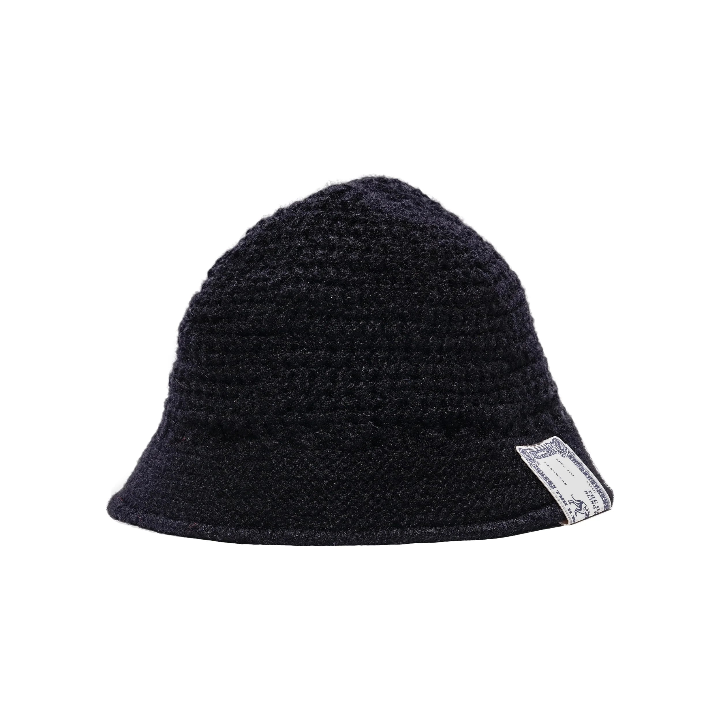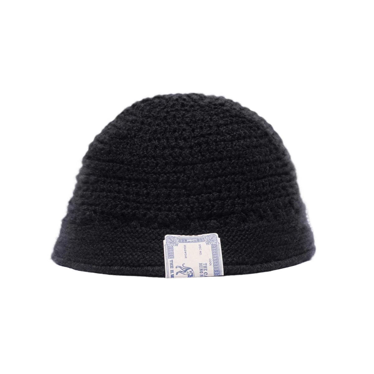 A low-gauge knit hat with a brim, commonly known as a crochet hat.