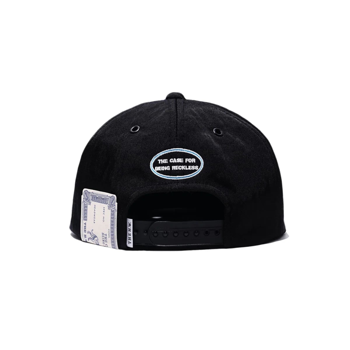 A skate-style cap featuring a low crown with six panels and a flat brim.