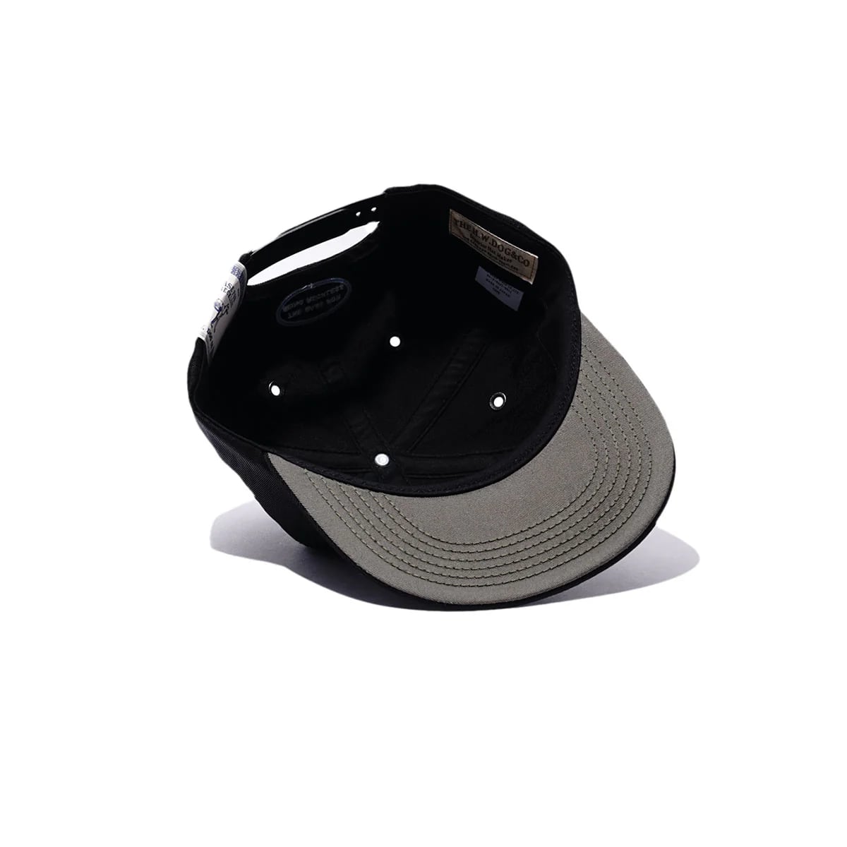 ロークラウンの6パネルにフラットブリムを合わせたスケートスタイルなキャップ。