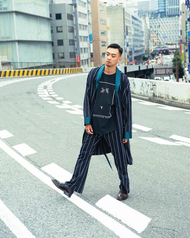 あえてUK感のあるレジメンタルストライプを使用し、パンク的な不良感も取り入れたデザイン